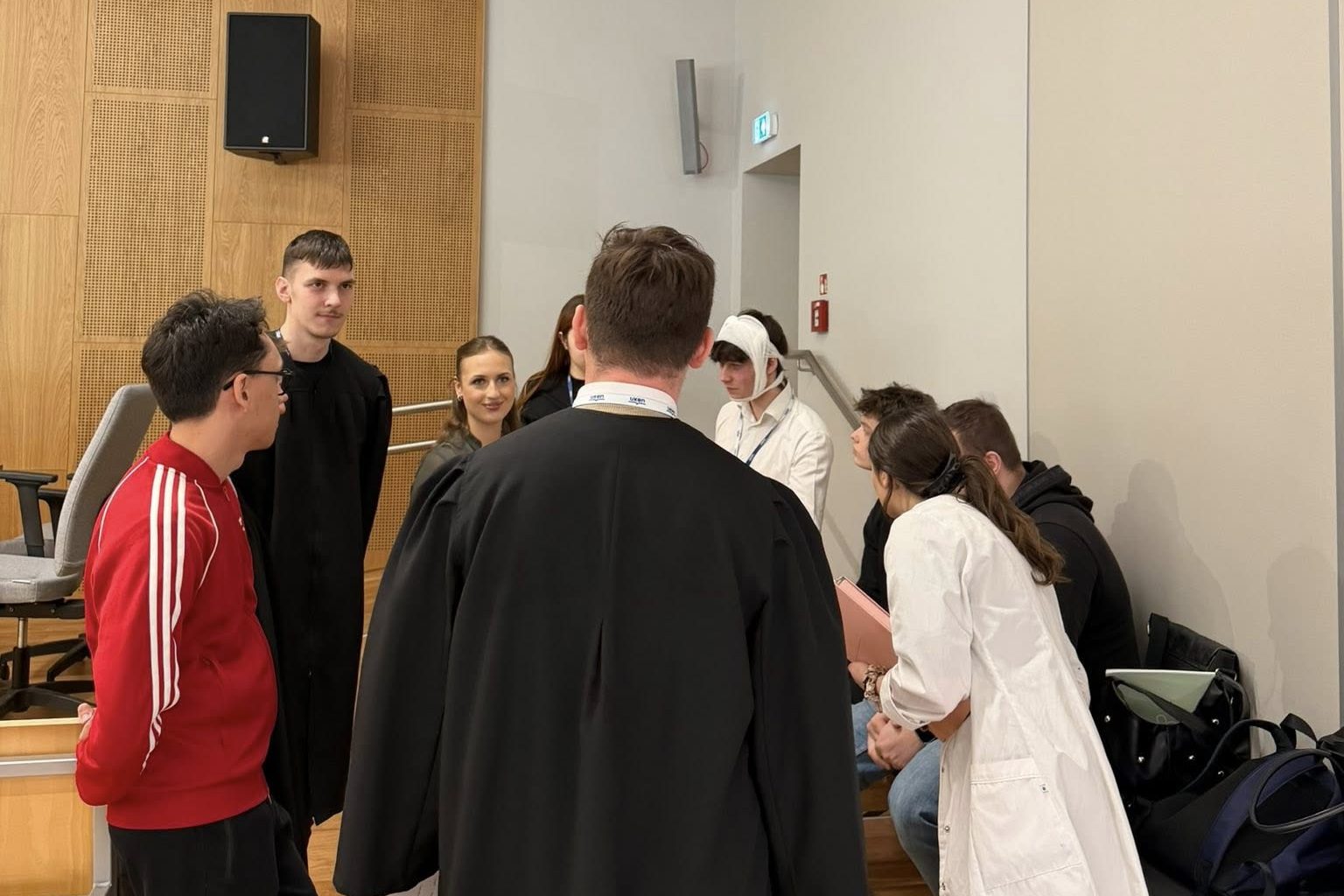 Uczestnicy mieli również okazję zapoznać się z praktycznym wymiarem prawa poprzez symulację rozprawy karnej (art. 158 §1 w zw. z art. 157 §1 k.k.). Po jej zakończeniu odbyła się dyskusja nad proponowanym rozstrzygnięciem, która zaowocowała interesującą wymianą argumentów i opinii. Osoba, której stanowisko było najbliższe prawidłowemu rozstrzygnięciu, została wyróżniona.
